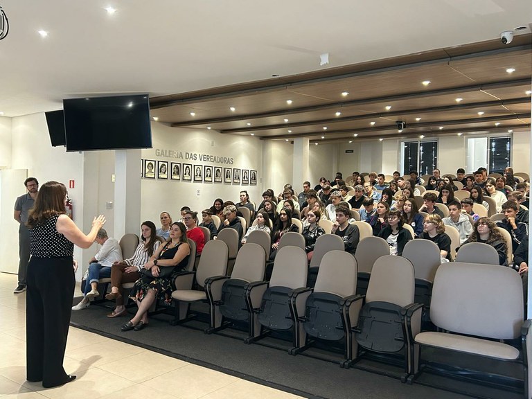 Alunos do 9º ano das escolas municipais, estaduais e da rede privada de Serafina Corrêa participaram nesta semana das palestras iniciais do Programa Vereador Juvenil. As atividades ocorreu no Plenário Darcy Sobreira Soccol.